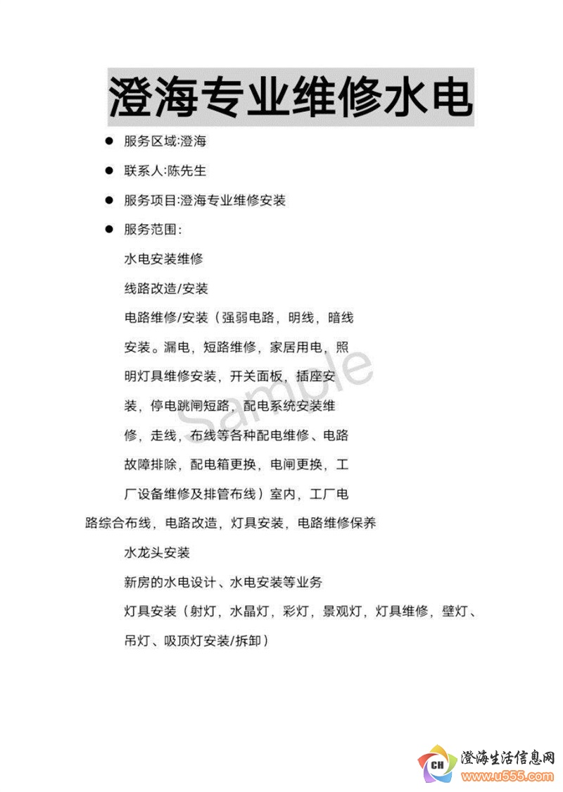 提示:联系我时,请说明在澄海乐向生活信息看到的,谢谢!