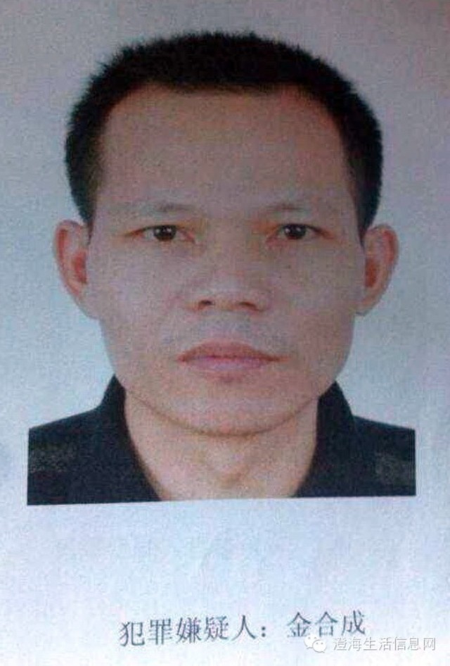2012年7月17日,汕头市澄海区莲华镇下长宁村发生一宗故意杀人案,金合成有重大的作案嫌疑。金合成,男,1968年12月17日出生,住广东省汕头市澄海区莲华镇下长宁村前新厝1号,身份证号:440521196812173539,身高约1.68米,偏瘦,皮肤黝黑,从事建筑泥工职业。请知情者速向公安机关举报。对提供重要线索抓获犯罪嫌疑人或者直接抓获犯罪嫌疑人的,公安机关将奖励人民币3万元,并为举报人保密。 举报电话: 0754-85887206 85886735 0754-110