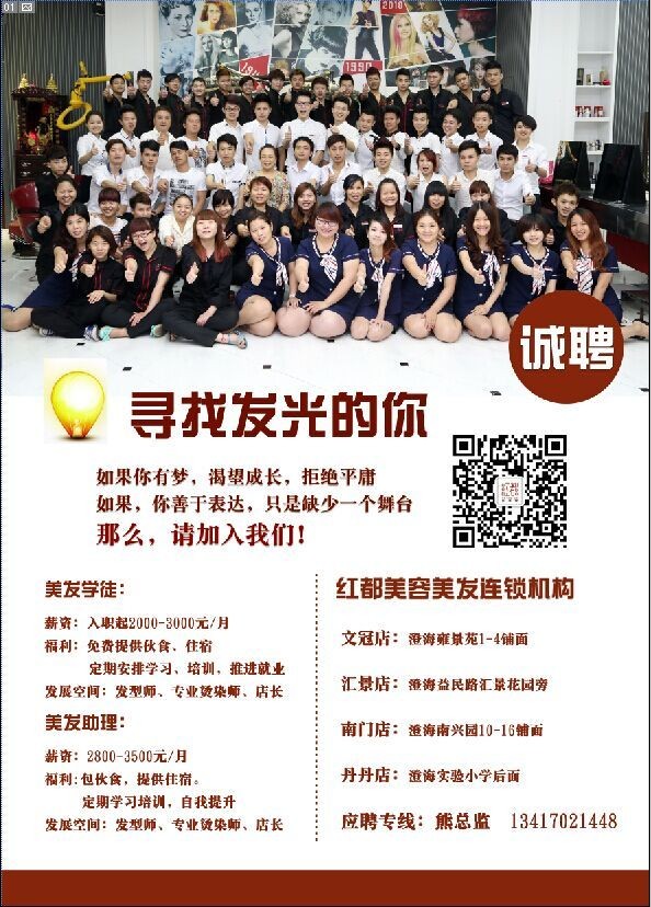 红都美容美发连锁机构诚聘美发学徒、美发助理!